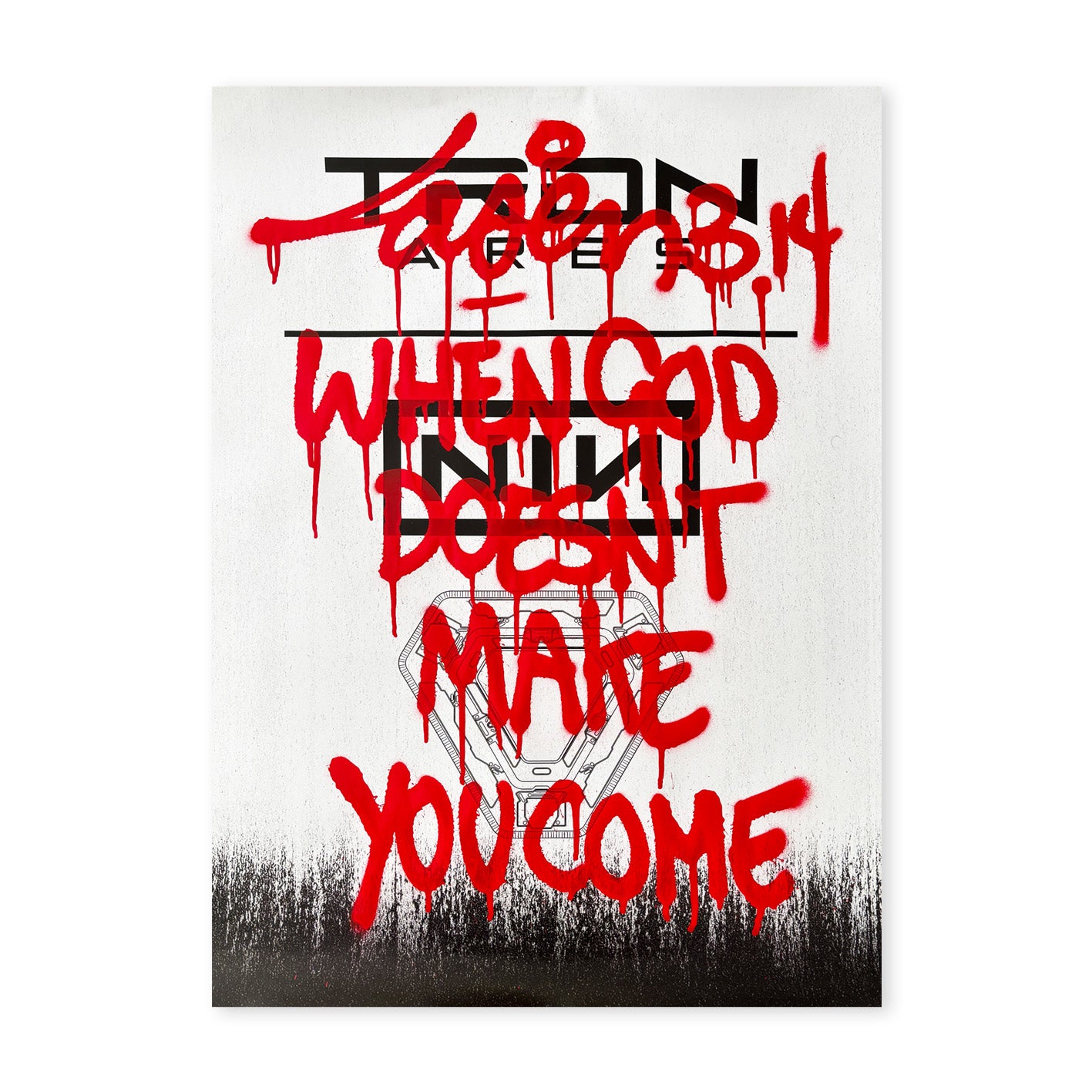 On top of these posters, Laser 3.14 has added his signature handstyle/tag in paint, transforming a disposable object of commercial culture into a raw artwork.
