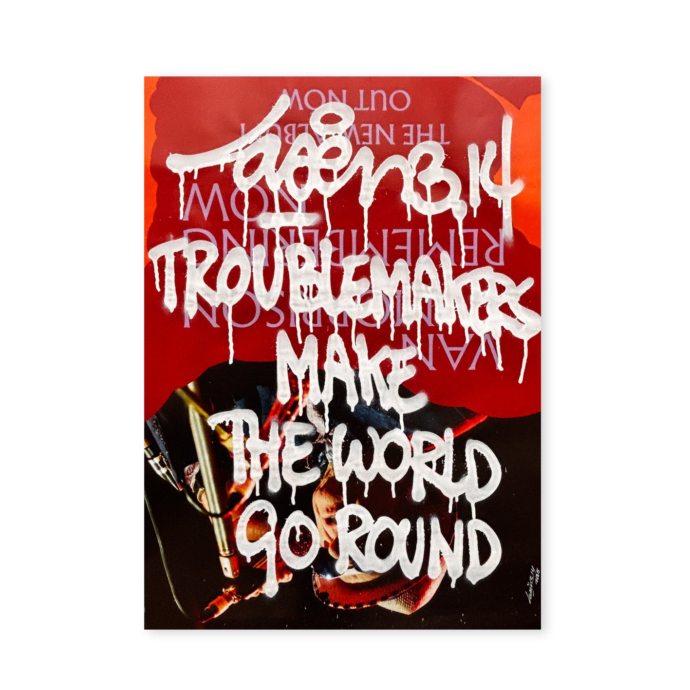 On top of these posters, Laser 3.14 has added his signature handstyle/tag in paint, transforming a disposable object of commercial culture into a raw artwork.